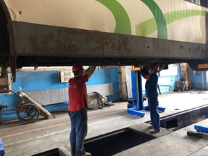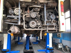 隨著新車型的疊新?lián)Q代,傳統(tǒng)的地溝舉升已不能滿足新車型的維保需求,為更安全,便捷地進(jìn)行車輛各項(xiàng)維保工作,總公司在資金緊張情況下,籌措資金,為修理公司購(gòu)置4臺(tái)充電移動(dòng)式重卡舉升機(jī),該移動(dòng)式重卡舉升機(jī)采用無(wú)線信號(hào)連接,蓄電池供電,液壓系統(tǒng)平穩(wěn)安全舉升,不需要固定工位使用,操作人員直立地面維修,操作便捷。