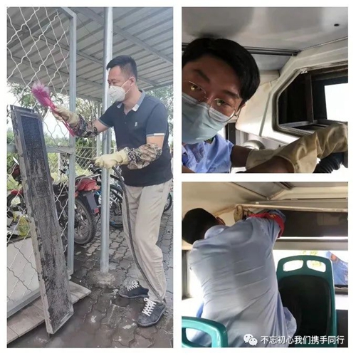 三隊在車輛衛(wèi)生管理方面一直是五公司的標兵,不僅起到了帶頭示范的作用,還是發(fā)現(xiàn)問題、解決問題最多的路隊。衛(wèi)生清理過程中,三隊發(fā)現(xiàn)位于公交車內(nèi)部最后方電子顯示屏是車輛衛(wèi)生區(qū)死角,于是,精益求精的他們在實驗了眾多方法后,發(fā)現(xiàn)了利用小型手槍鉆配合氣泵這個方法很實用。小型手槍鉆起到快速拆卸電子屏的作用,對比扳手、螺絲刀等工具更加節(jié)約時間,氣泵吹出的帶有壓力的氣體則有效解決因電子顯示屏屏面凹凸不平、且有縫隙的衛(wèi)生污垢清理問題。這樣的好處是既避免了用水清理電子設(shè)備造成不必要的損壞又能讓公交車的灰塵“釜底抽薪”。另外,針對個別公交車駕駛室配電箱出現(xiàn)爆漆問題,三隊“廢物利用”用廣告紙對其進行粘貼,在節(jié)省資金的同時達到了公交車內(nèi)外整體美化的效果。